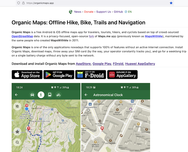 אנא תנו לנו ⭐ ⭐ ⭐ ⭐ ⭐ ב-AppStore וב-Google Play כדי לעזור לפרויקט זה לשרוד! 🔥 —— Organic Maps היא אפליקציית מפות לא מקוונת בקוד פתוח לאנדרואיד ו-iOS עבור מטיילים, תיירים, מטיילים ורוכבי אופניים, המבוססת על נתוני OpenStreetMap שמקורם במיקור המונים ונערכה באהבה על ידי מייסדי MAPS.ME.